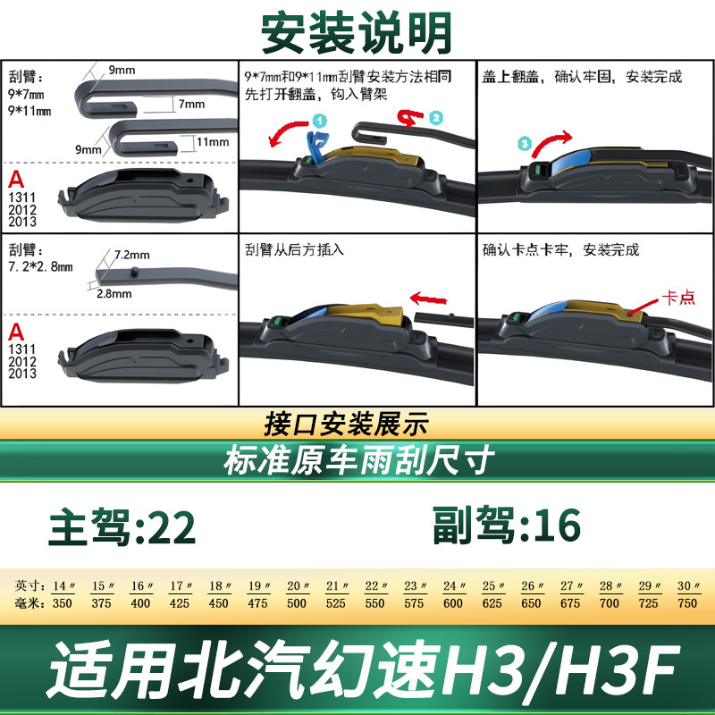 Upgrade your BAIC Huansu H3 with these premium frameless windshield wiper blades. Featuring silent rubber technology for clear visibility and easy installation.