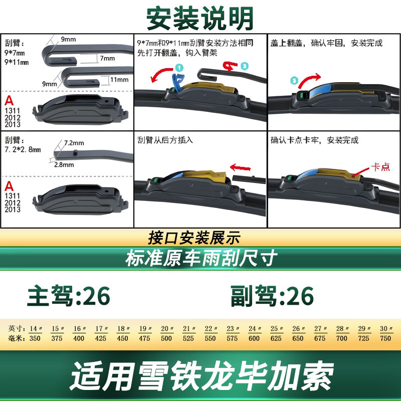 - Universal fitment design compatible with multiple wiper arm types including hook and dedicated interfaces.