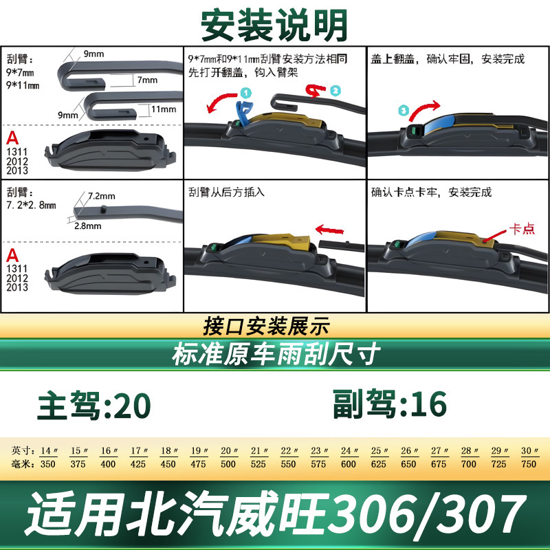 Universal Multifunctional Frameless Wiper Blades with Silent Rubber Strip for BAIC Weiwang 306 307