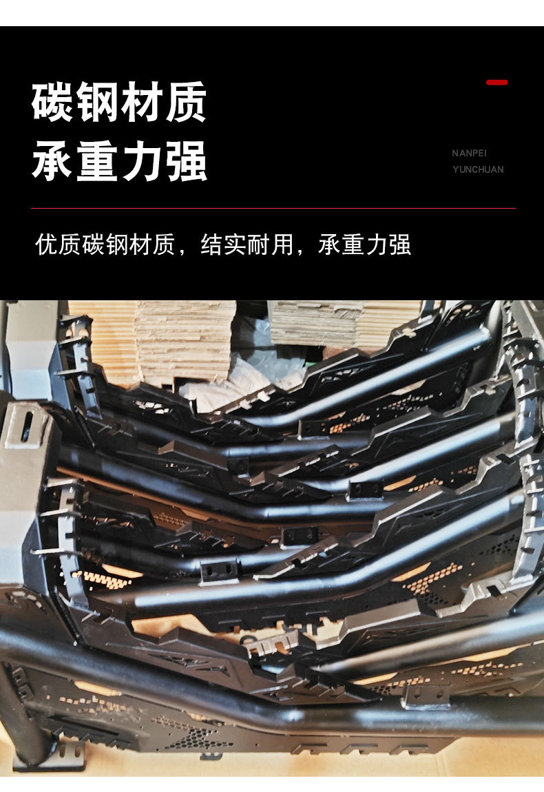 - Durable heavy-duty steel construction ensures long-lasting structural integrity and impact resistance for off-road environments.