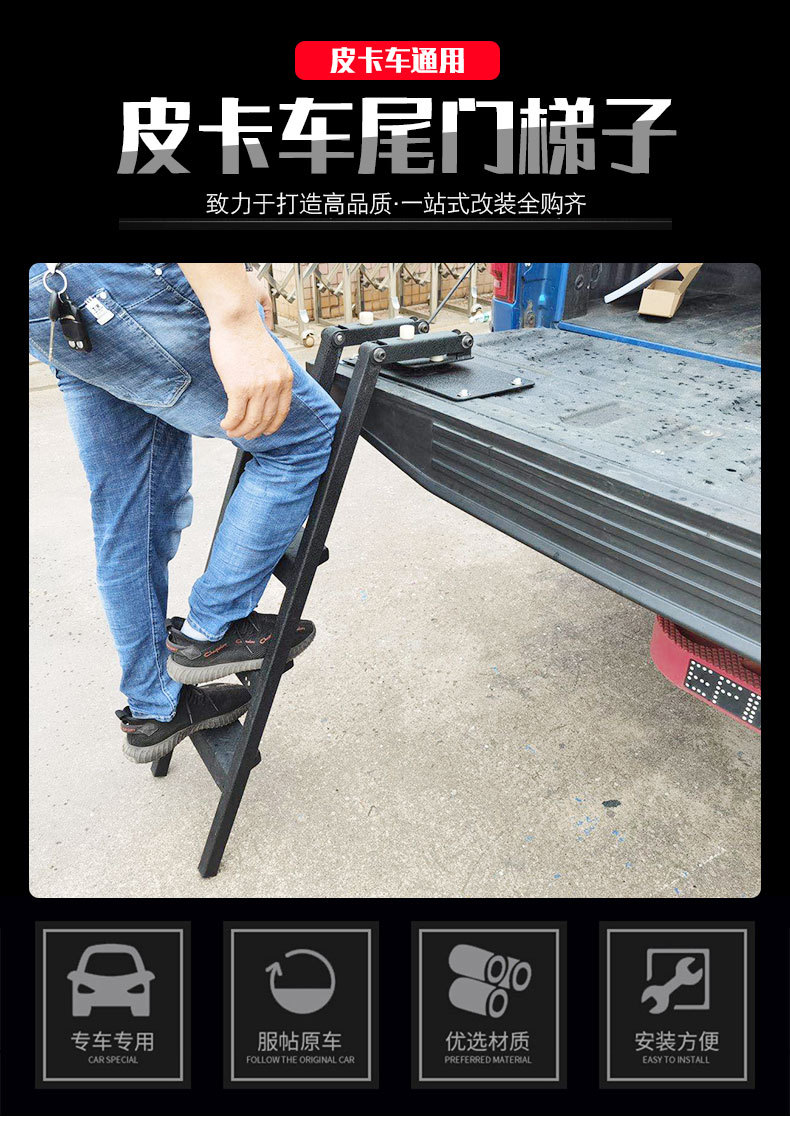 Universal Retractable Pickup Truck Tailgate Ladder Foldable Rear Bed Step Access for Hilux Revo and L200 Triton