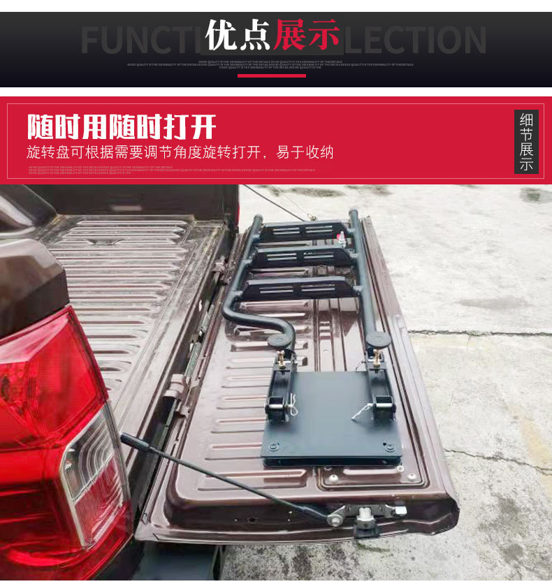 - Space-Saving Design: Features a foldable and rotatable mechanism that neatly tucks away against the tailgate when not in use without obstructing cargo space.