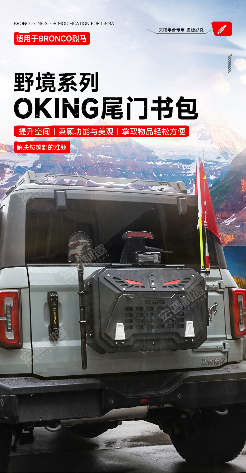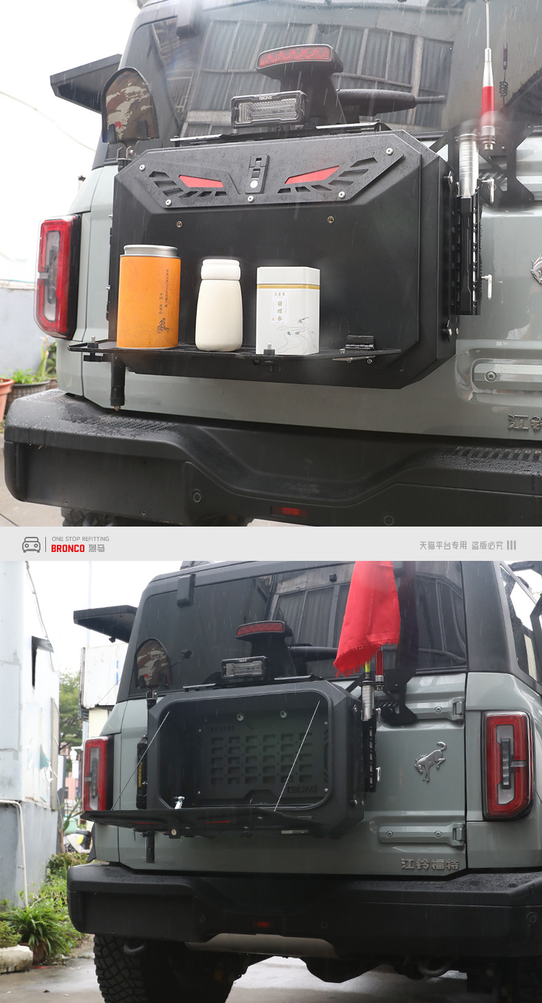 Tags: adventure tool organizer, off-road gear carrier, rear door tool kit, spare tire backpack, SUV exterior accessories, tailgate storage box, vehicle cargo box