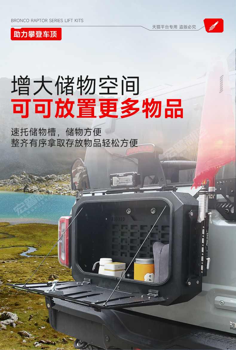 Universal Tailgate Storage Box and Tool Kit Carrier for Off-Road Vehicles Tank 300 500 Bronco BJ40