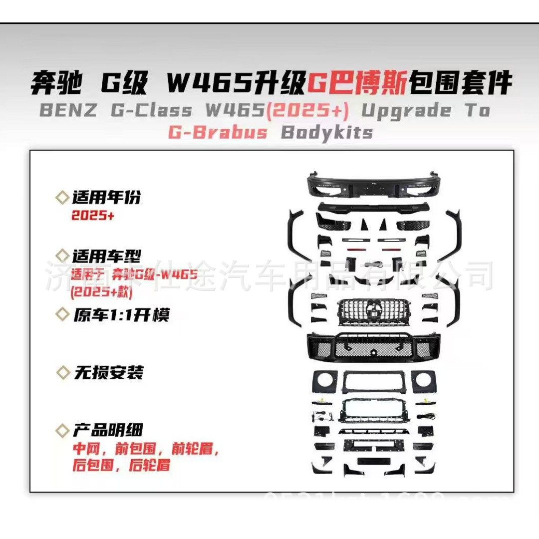 Upgrade your Mercedes-Benz G-Class with our premium W465 Brabus style body kit. Enhanced durability and aggressive styling for 2025 models. Fast shipping available.