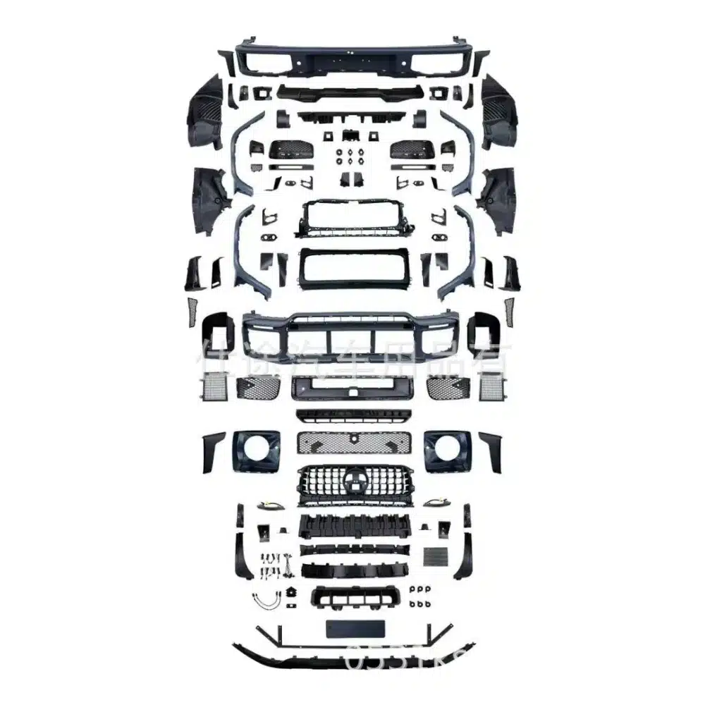 - Comprehensive exterior upgrade featuring front bumper and grille components designed for G-Class W465 aesthetics.