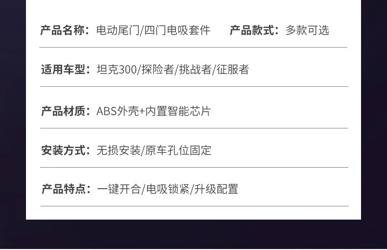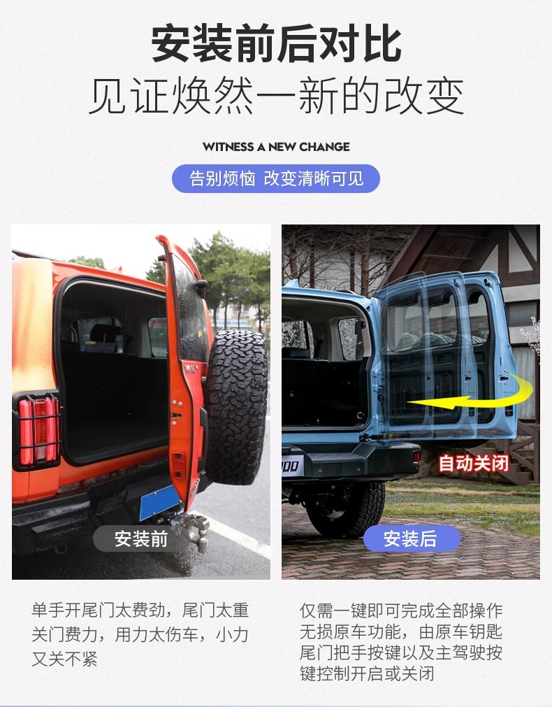 Wei Pai Tank 300 Electric Tailgate Modification Special Side-opening Electric Tailgate Four-door Electric Suction Door Intelligent Electric Suction Tailgate