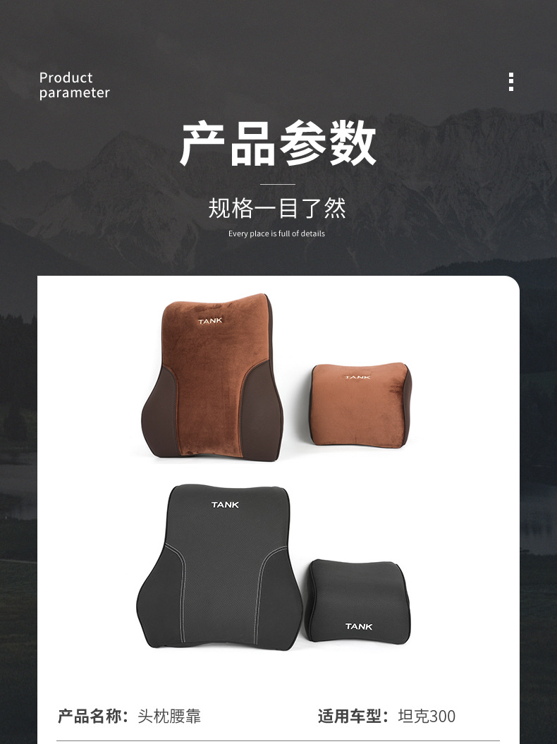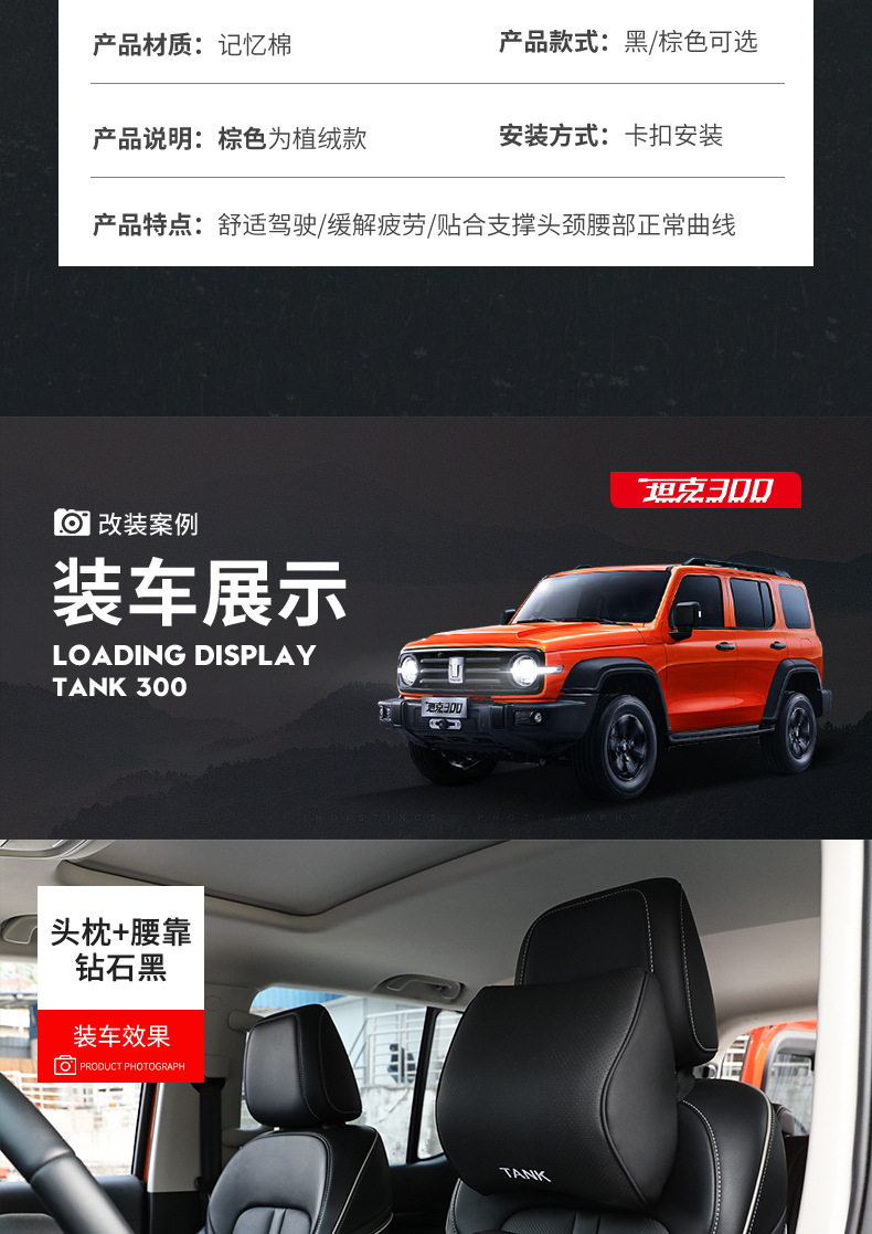 Wei Pai WEY Tank 300 Headrest Neck Pillow Memory Foam Inner Core Waist Back Pillow Interior Car Accessories
