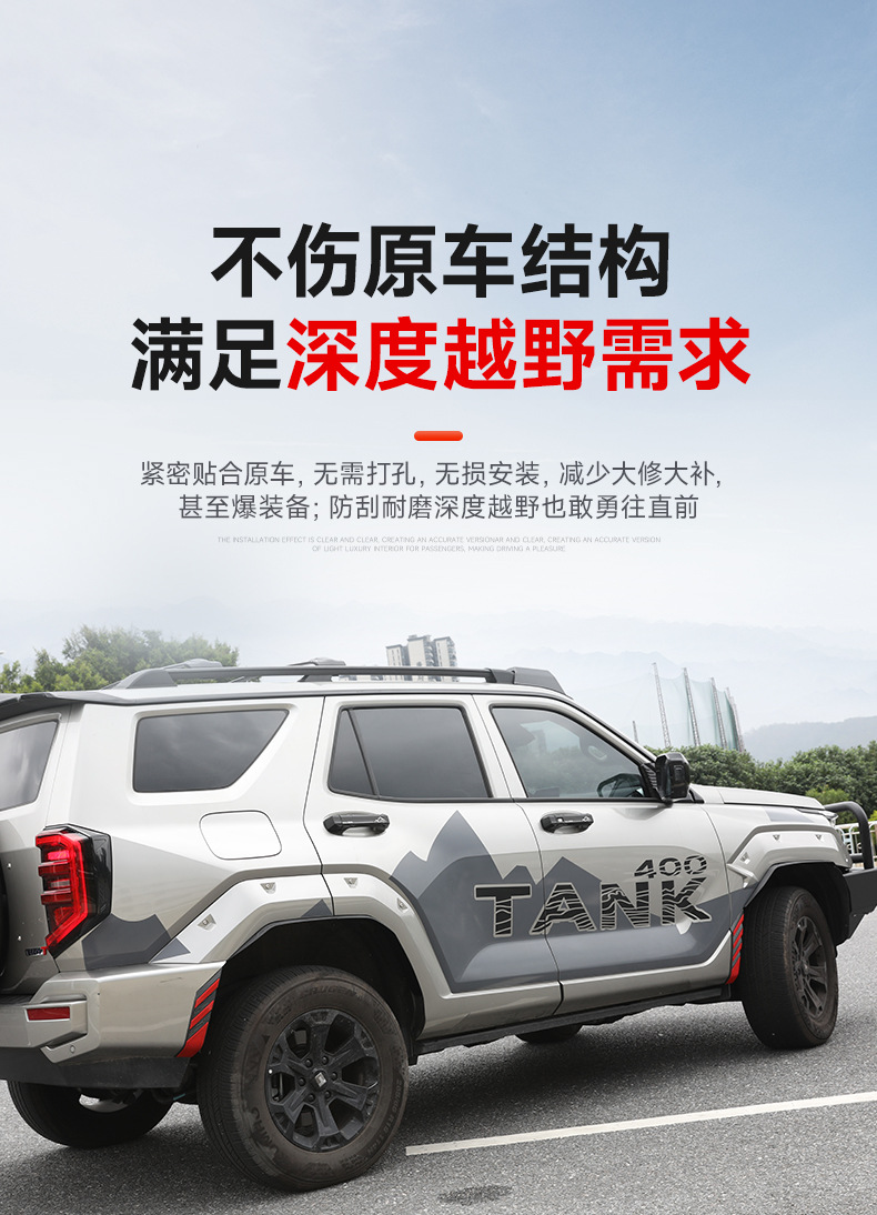 - Specifically designed for the Tank 400 to provide a seamless integration with original vehicle body lines.