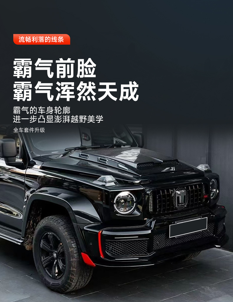 Tags: aerodynamic rear spoiler, exterior car modification, front bumper assembly, off-road body kit, vehicle grille replacement, wide body styling kit