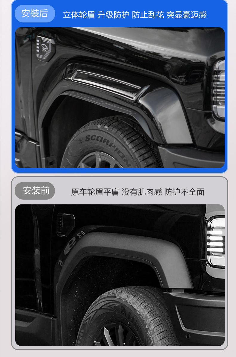 Tags: Door Panel Protection, fender flares, off-road exterior accessories, SUV side guard, vehicle body trim, wheel arch extension, wide body kit