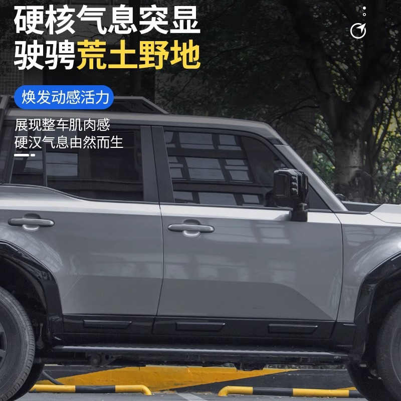 - Integrated wheel arch flares and side skirts provide enhanced protection against mud, rocks, and road debris during off-road excursions.