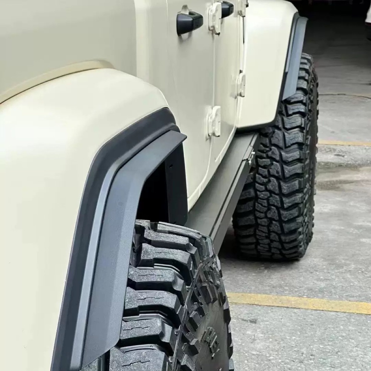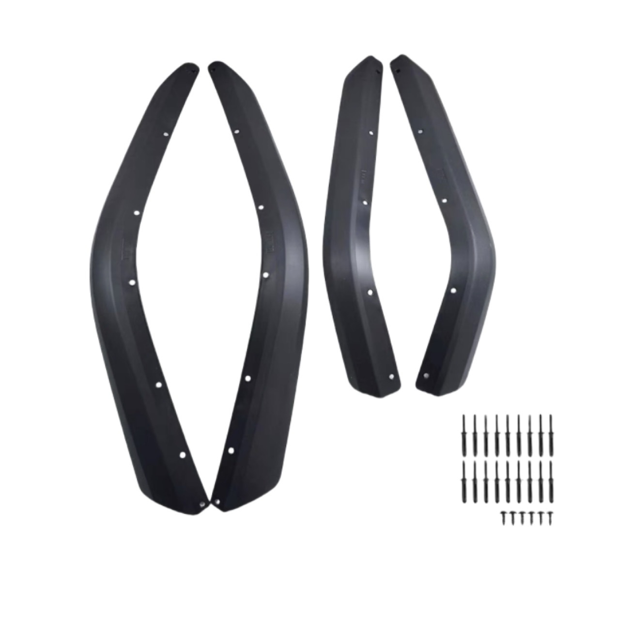 Boost your Jeep Wrangler JL or Gladiator JT’s off-road protection with our 4cm widened fender flare extensions. High-clearance design with easy rivet installation.