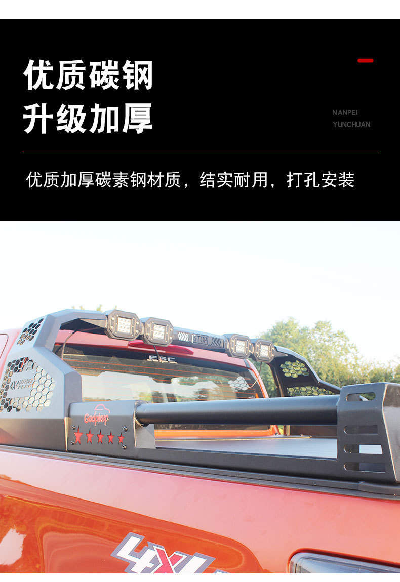 - Dual-function design acts as a protective roll bar for the rear cabin while offering additional mounting points for outdoor gear.