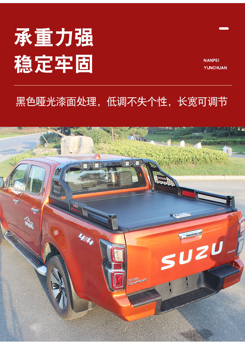 Width-Adjustable Truck Bed Roll Bar with LED Integrated Lights for Isuzu D-MAX 2021-Present