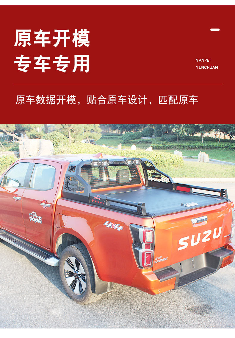 Tags: chase rack, Isuzu D-MAX accessories, off-road light bar mount, pickup exterior styling, rear cargo roll cage, sport bar with lights, truck bed roll bar