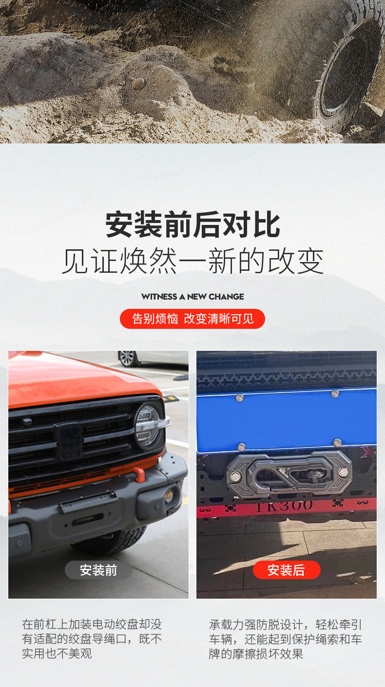 - Easy Installation: Bolt-on design allows for a straightforward setup on front bumpers or winch plates without complex vehicle modifications.