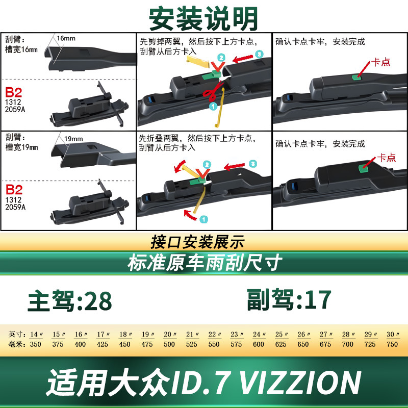 - Custom fit design specifically engineered for VW ID.7 VIZZION models to ensure seamless compatibility with the original wiper arm.