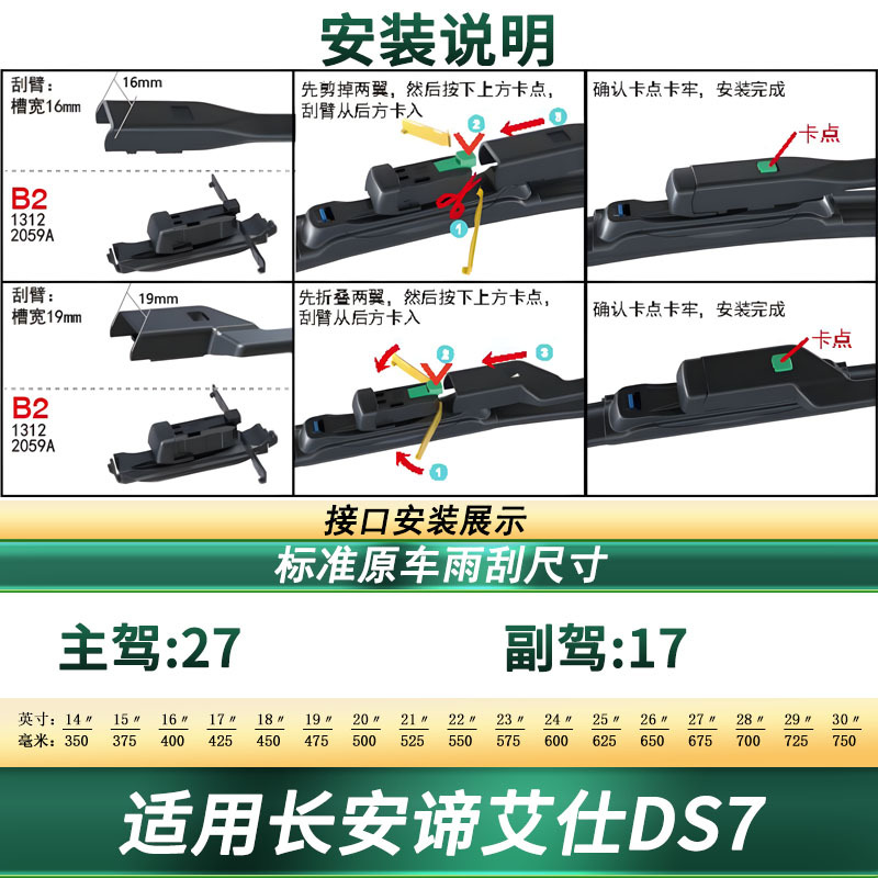 Tags: car window wipers, DS7 accessories, frameless wiper blades, front wiper set, silent rain blades, windshield wipers, wiper blade refills