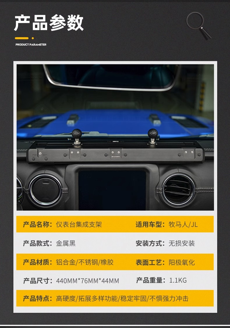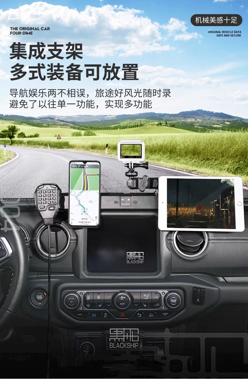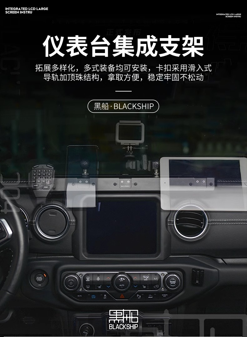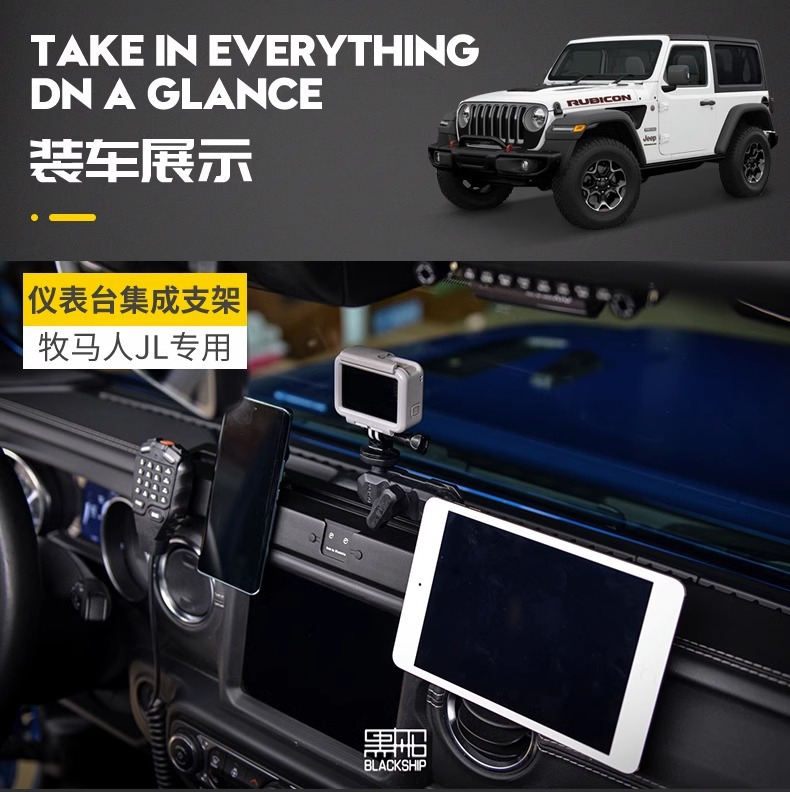 Wrangler JL central control instrument panel integrated bracket modified guide rail multi-function walkie-talkie mobile phone rack interior accessories