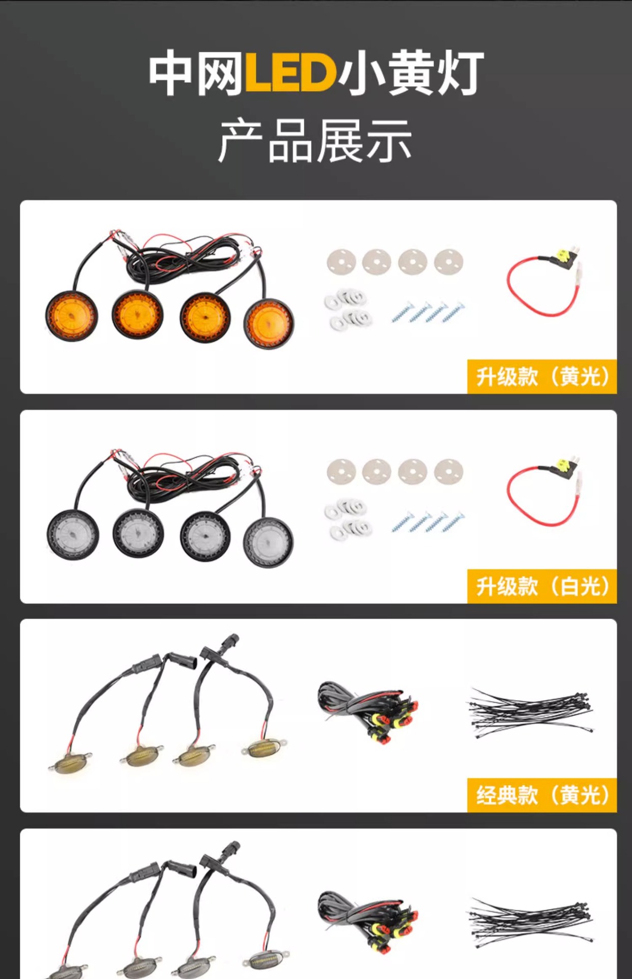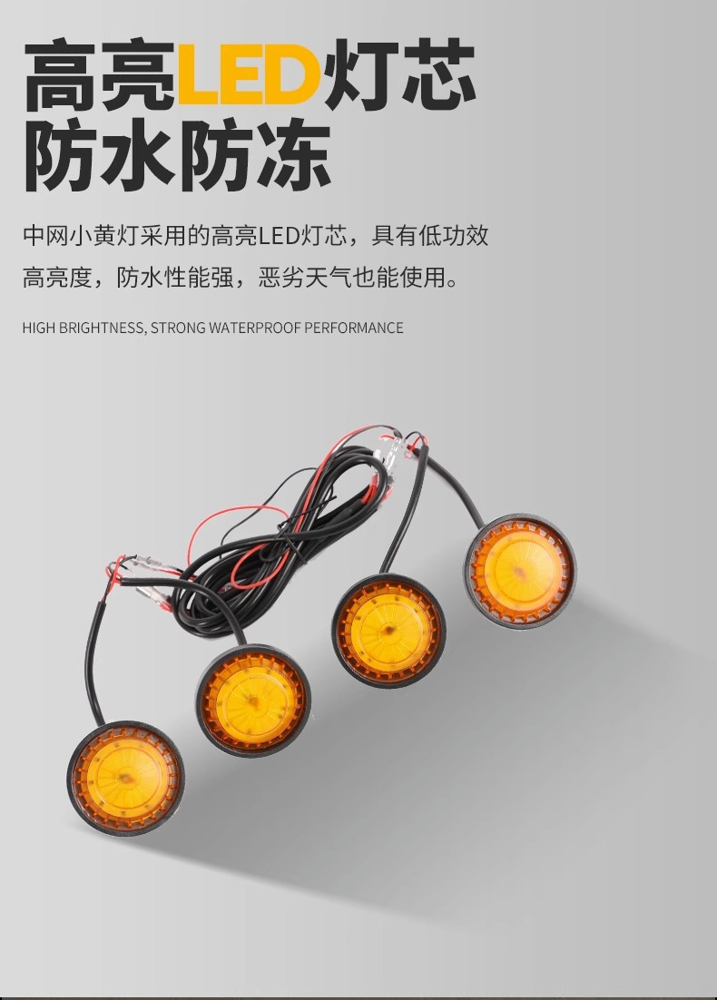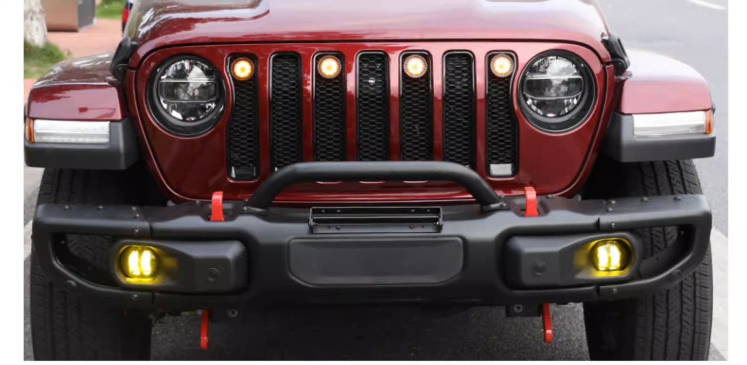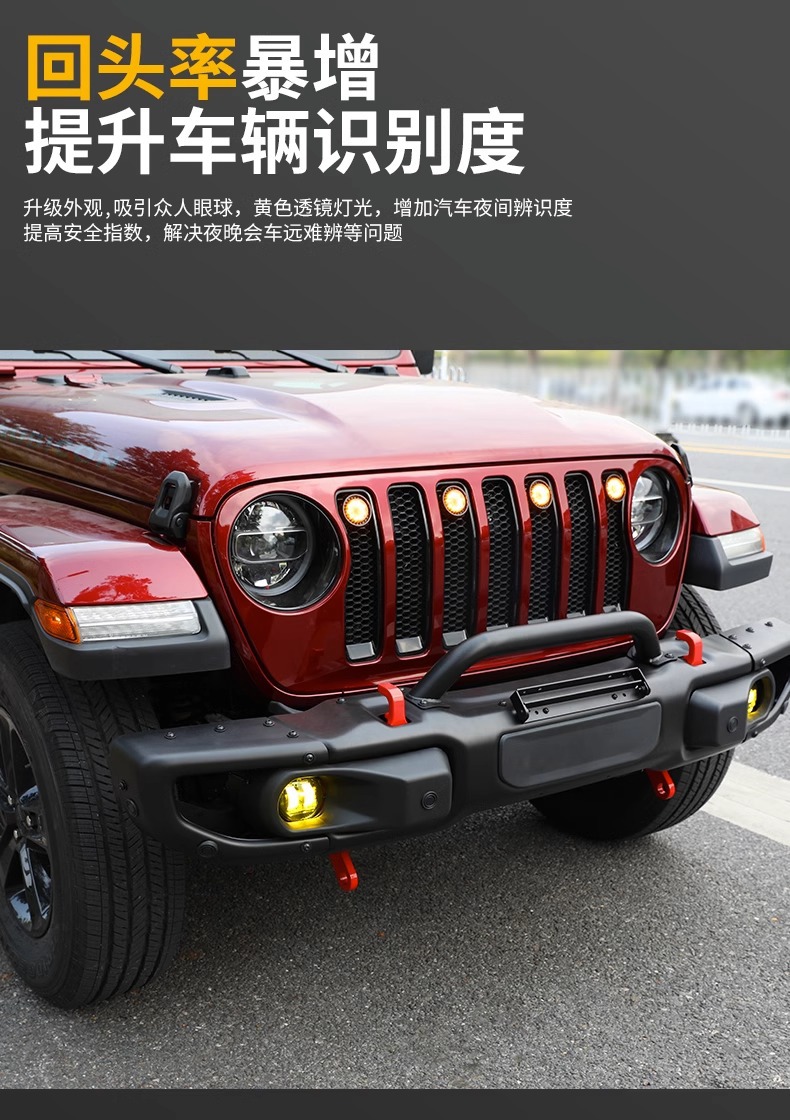 Wrangler middle net small yellow light 4xe cross-country middle net light grille front face LED light haze light daytime running light atmosphere light