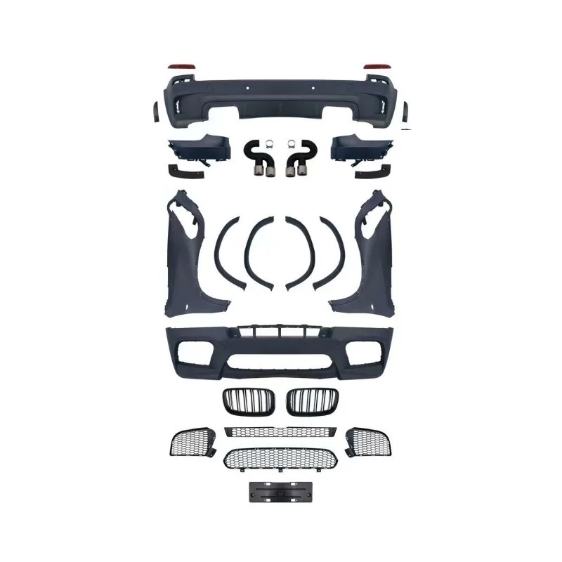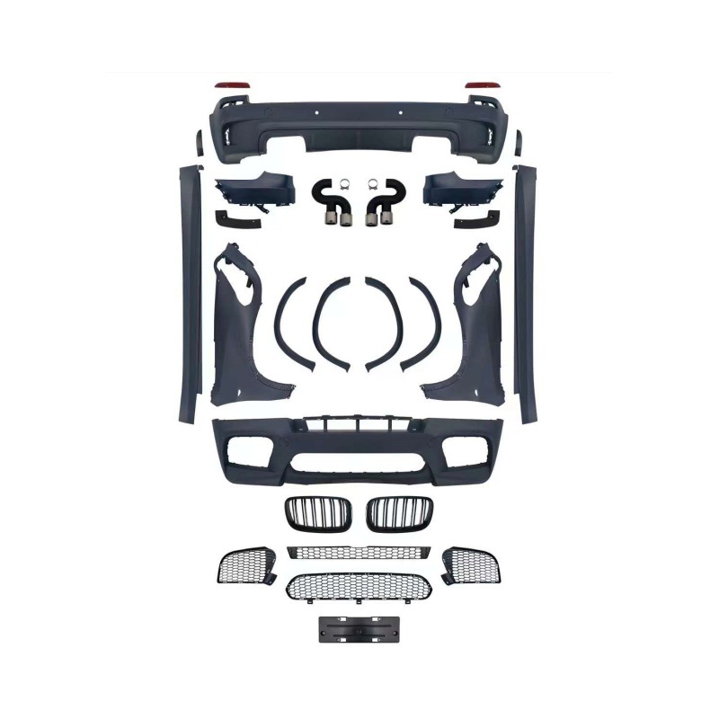 Upgrade your BMW X5 E70 with this high-quality X5M style body kit. Features front bumper and fenders for a bold, aerodynamic look and enhanced vehicle styling.