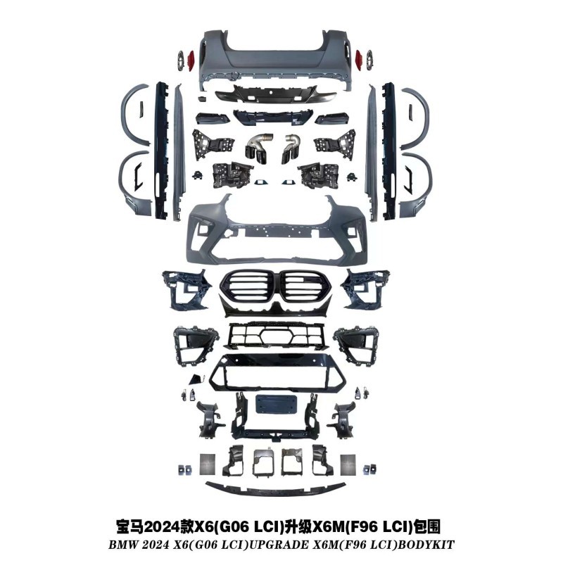 Upgrade your BMW X6 G06 with our premium X6M style body kit. Includes front and rear bumpers plus exhaust tips for a sporty 2023 LCI facelift transformation.