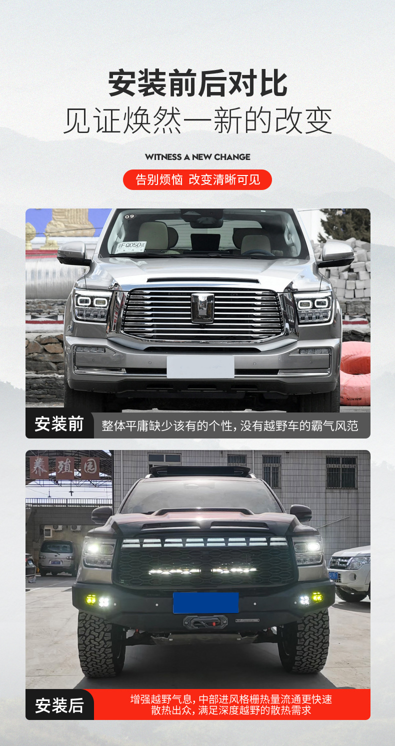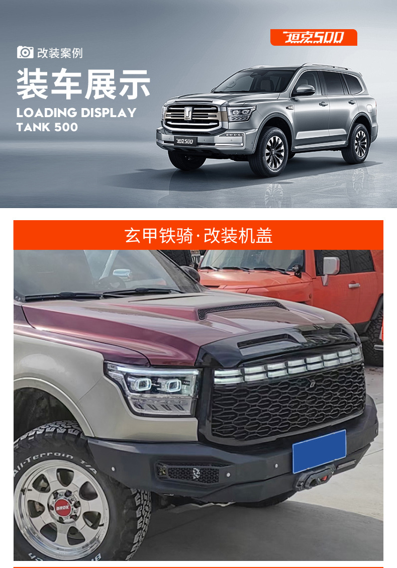 Xuanjia Style Front Bumper and Grille Kit with Transparent Hood Cover for Tank 500