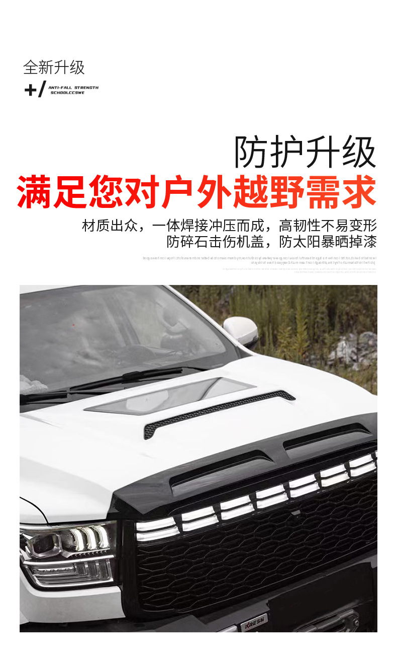 Tags: exterior body modification, front bumper assembly, off-road bumper kit, sequential LED grille lights, transparent engine hood, vehicle armor styling