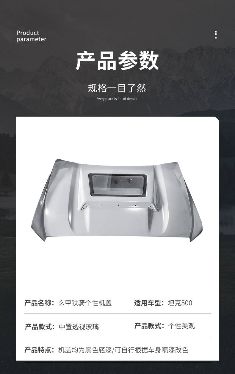 - Unique transparent hood cover design allows for a clear view of the engine bay while maintaining durability.