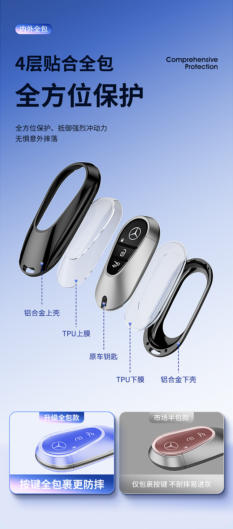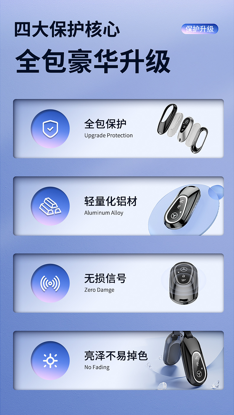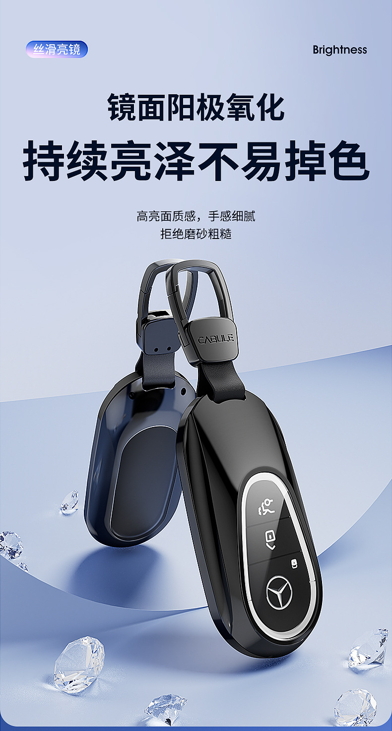 Tags: car key cover, key fob case, key signal blocking prevention, leather keychain, Mercedes key accessory, remote protector, zinc alloy key shell