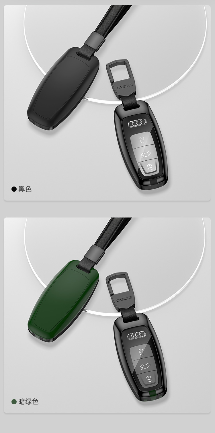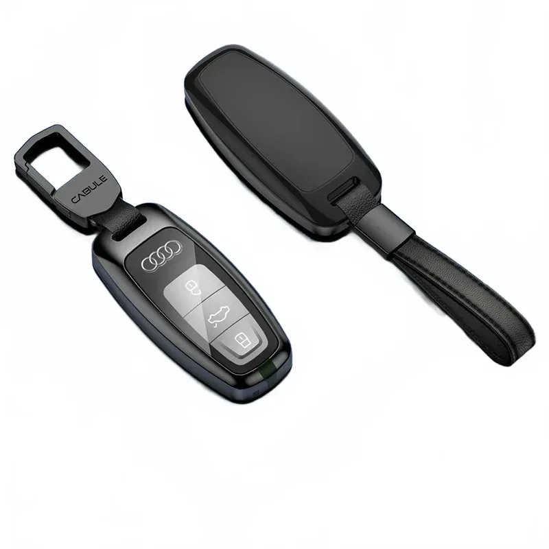 Zinc Alloy Car Key Fob Cover with Keychain Protector Case for Audi A4L A6L Q5L A3 A5 A7 A8 Q7