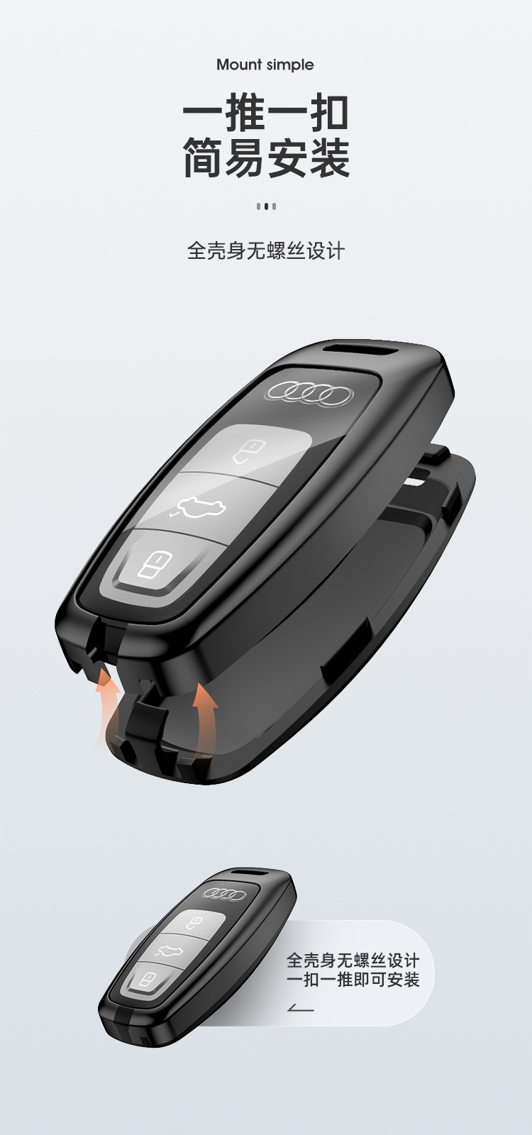 Upgrade your Audi key with this premium zinc alloy protector case. Designed for A4L, A6L, and Q5L, it offers full signal-friendly protection and a luxury finish.