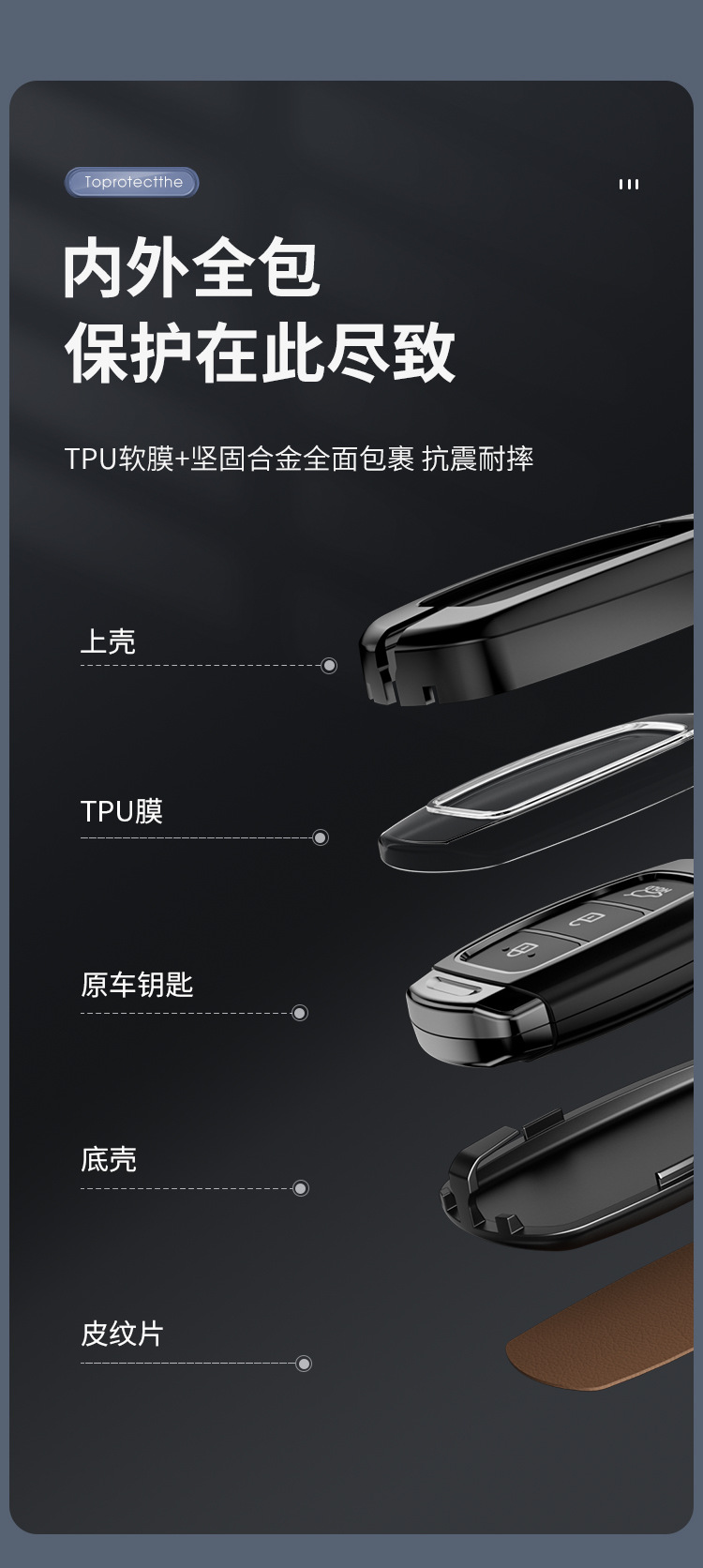 Tags: automotive interior accessory, car key case, car remote protector, fob protector, leather key shell, signal block free, zinc alloy key cover