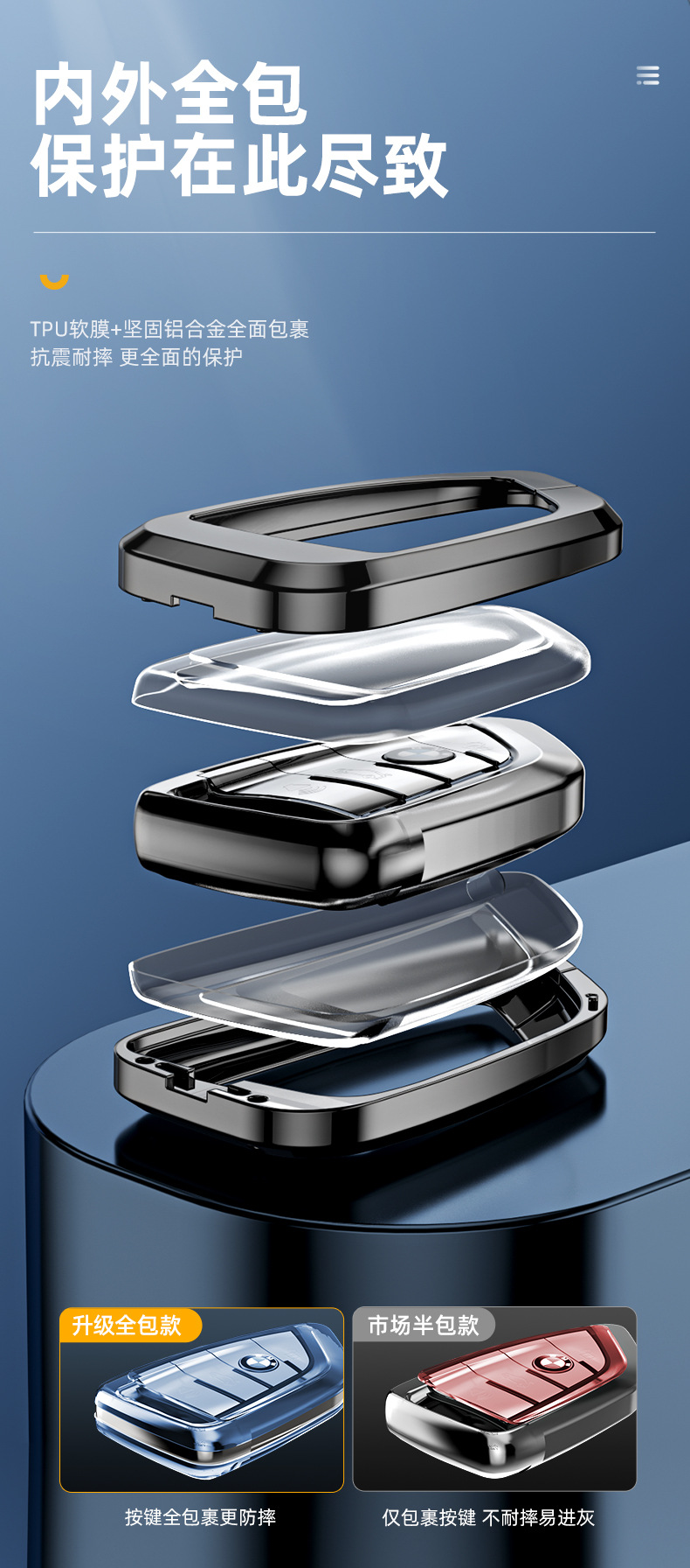 Tags: automotive interior accessory, bmw key cover, car key case, key fob protector, metal key shell, remote entry holder, zinc alloy key housing