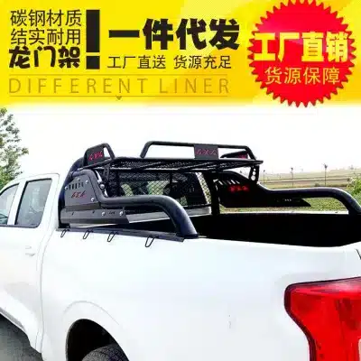 Pickup Truck Bed Roll Bar with Basket Cargo Carrier and Guard Rail